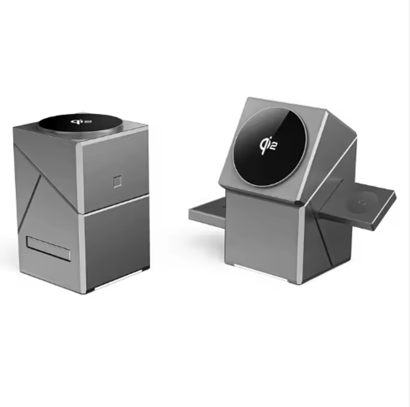 15W Fast Charging 3-in-1 Magnetic Wireless Charging Stand for Phones, Earbuds, Smartwatches, and PCs – Aluminum with Built-in Touch Buttons for Home Use • Supports simultaneous charging of phones, earbuds, and watches• 15W high-power wireless fast charging technology for improved charging efficiency• Smart magnetic alignment ensures precise attachment without shiftingHidden touch buttons allow you to switch charging modes with a simple touchUniversal Type-C port compatible with various charging adaptersNon-slip silicone base provides secure support and prevents wobbling• Foldable design for portable or desktop use• Compatible with electronic devices that support mainstream wireless charging protocols